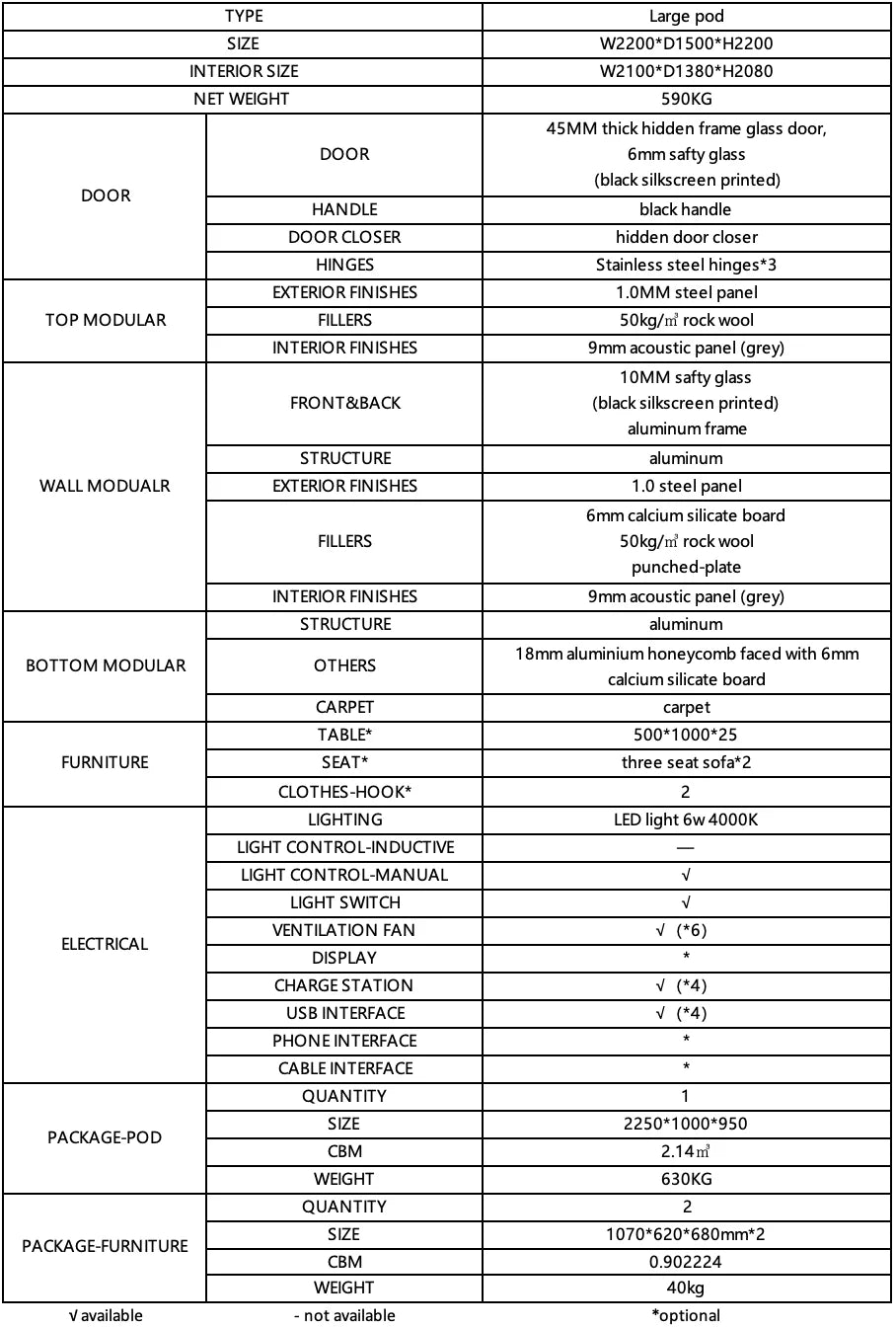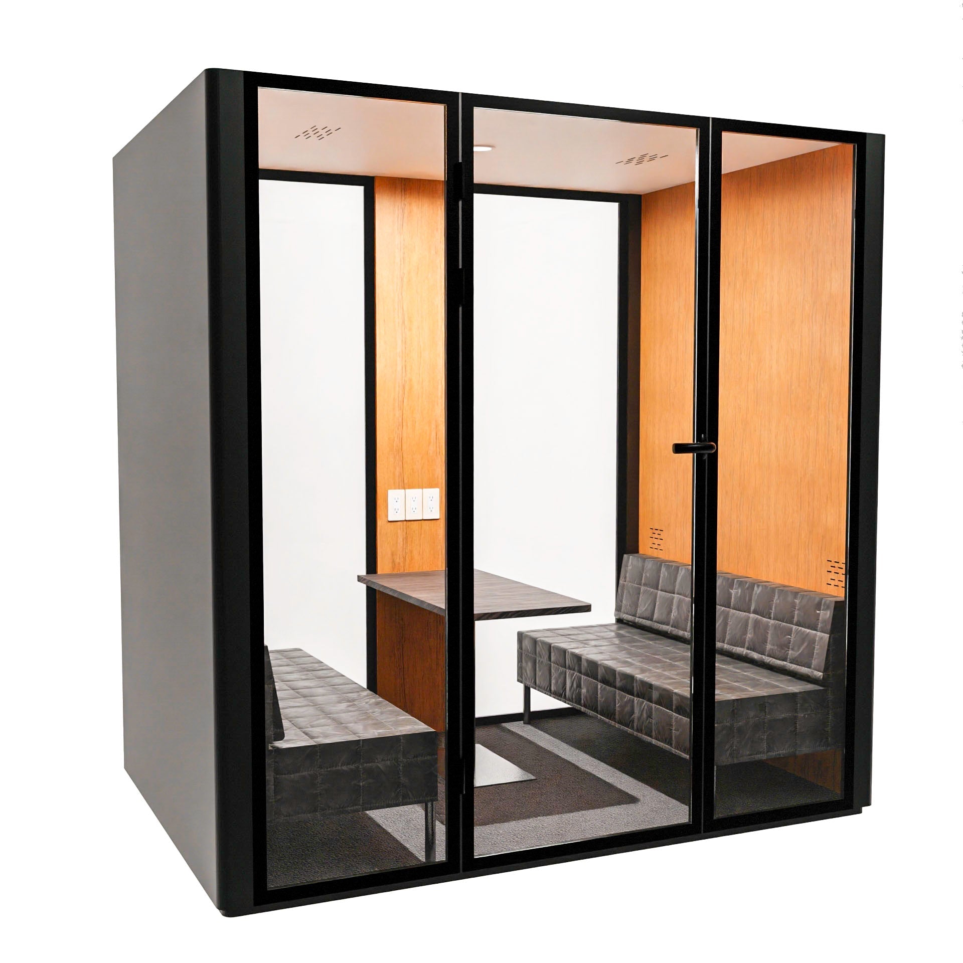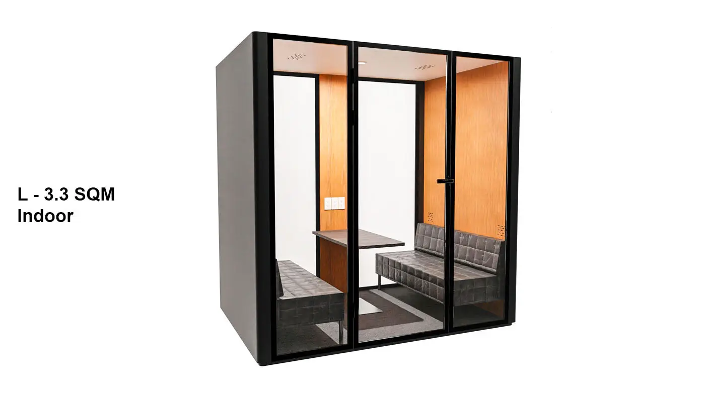 DESCRIPTION: The PAXTON POD is our modern indoor POD, comfortably seating 1-6 individuals in a secluded area for private conversations, video conferences, and phone calls.