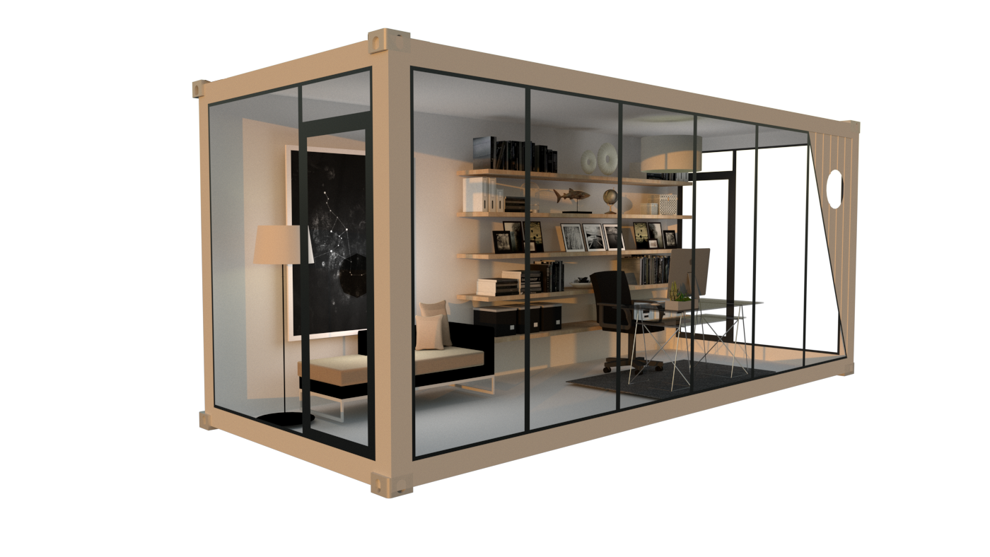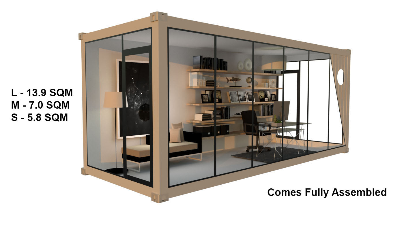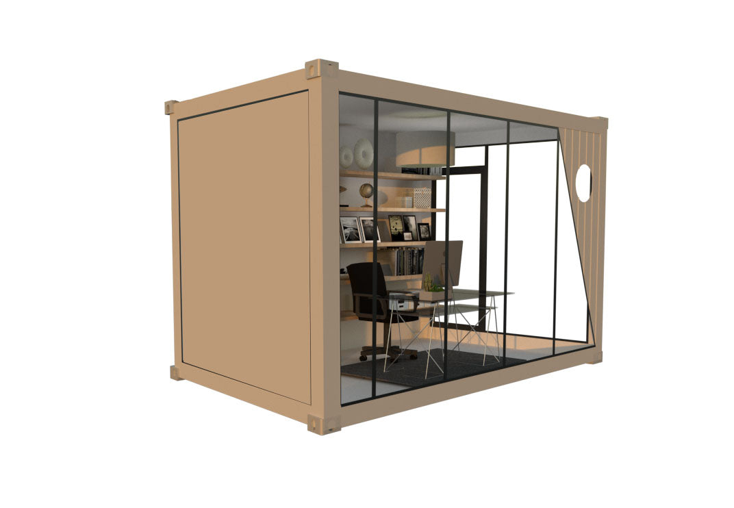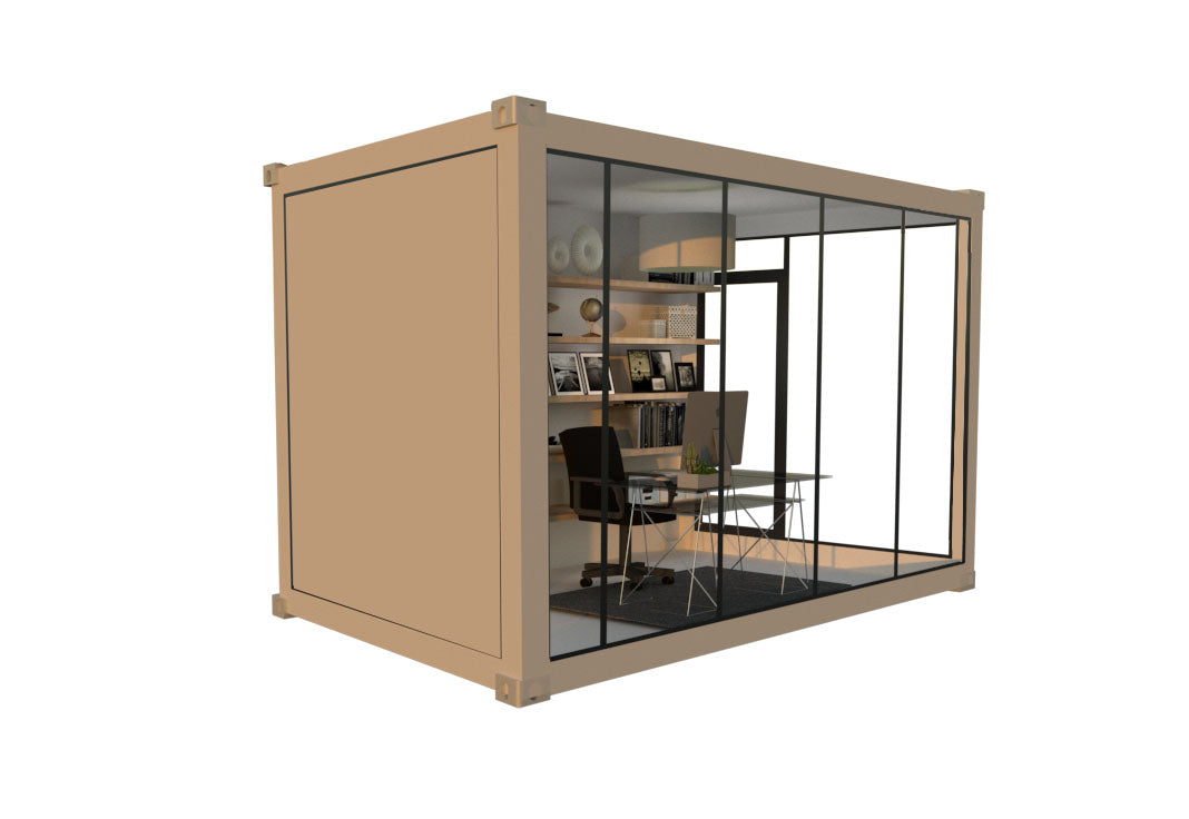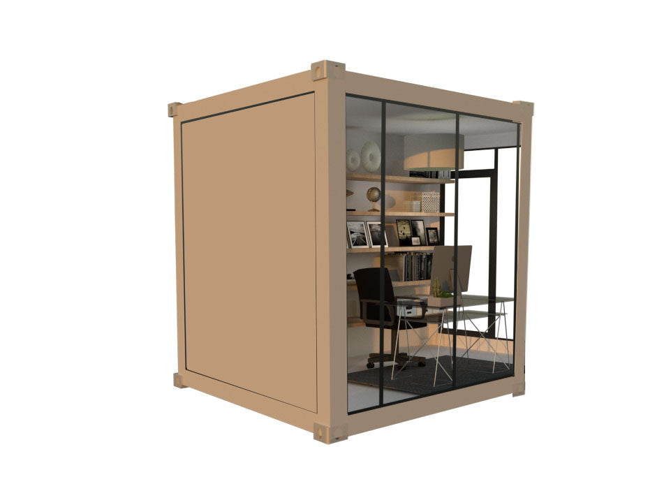DESCRIPTION: The PIPER POD is our most popular POD, providing you ample light through 3 glass walls, 2 entry door options and a nice touch of the modern aesthetic.